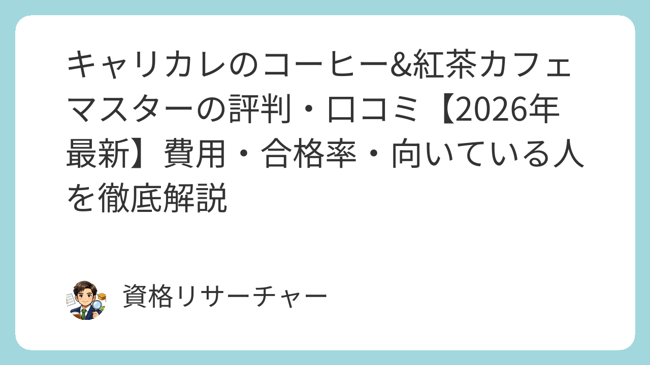 「キャリカレのコーヒー&紅茶カフェマスターって実際どうなの?」この記事では、費用・合格率・受講者の口コミ・向いている人を徹底解説します。