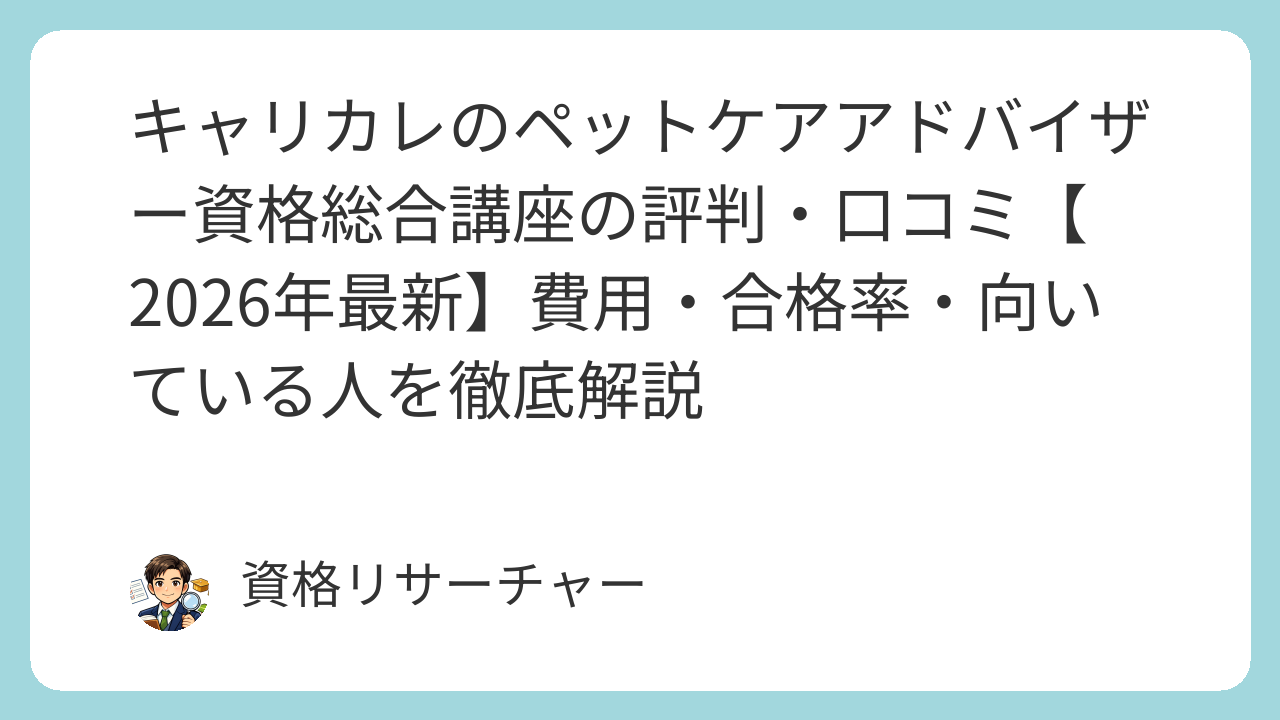 「キャリカレのペットケアアドバイザー資格総合講座って実際どうなの?」この記事では、費用・合格率・受講者の口コミ・向いている人を徹底解説します。