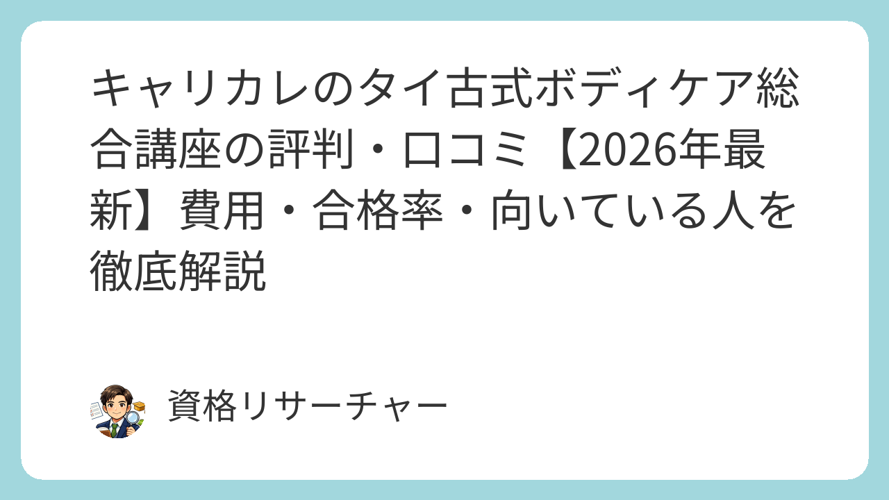 「キャリカレのタイ古式ボディケア総合講座って実際どうなの?」この記事では、費用・合格率・受講者の口コミ・向いている人を徹底解説します。